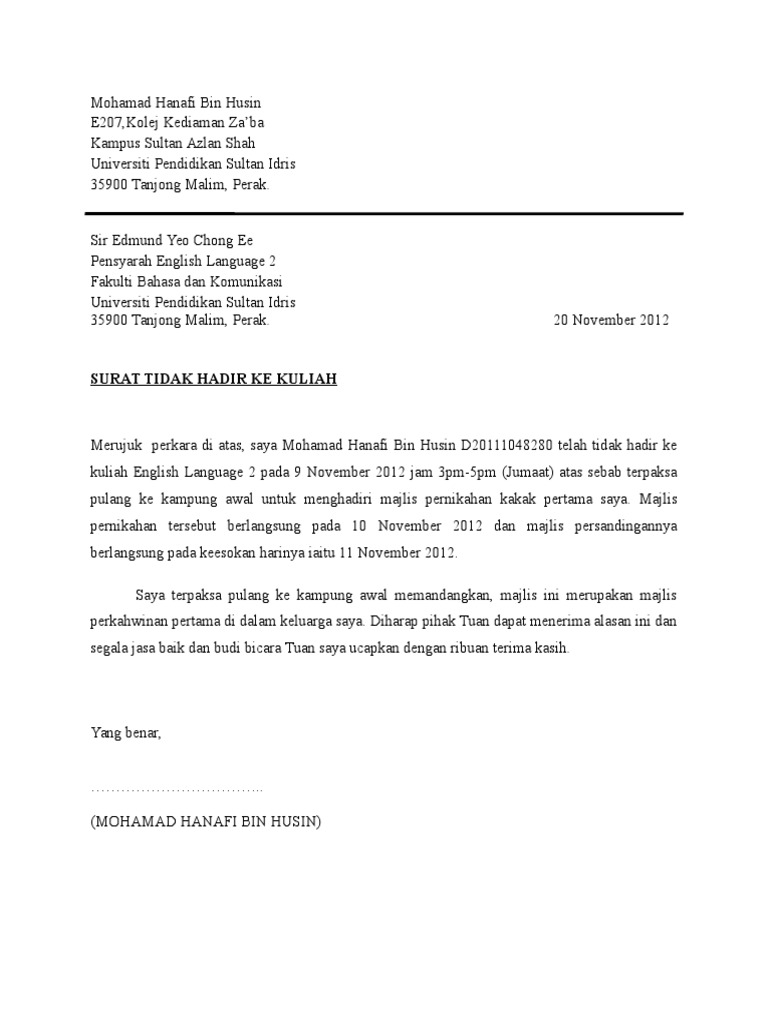 Surat Ketidakhadiran Ke Kuliah Pdf